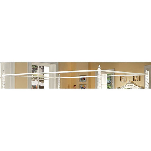 A room fit for a princess! The four poster canopy bed is delicately decorated with a carved motif design and finished in pearl white. The matching ...