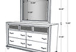 Elevate your bedroom with the glamorous appeal of this dresser and mirror set. The seven-drawer dresser showcases sparkling acrylic panels on its top drawers, complemented by faceted crystal hardware for radiant elegance. A crisp white finish highlights its clean silhouette, while turned bun feet add a timeless touch. The coordinating mirror features a beveled wooden frame that reflects light beautifully, enhancing the dresser’s bold style. Built with solid rubberwood, engineered wood, and okume veneer, this set balances chic design with lasting durability._x000D_ Key Features: • Seven-drawer dresser with sparkling acrylic panels and crystal hardware • White finish enhances the clean silhouette and brightens bedroom spaces • Turned bun feet add a classic design detail to the glamorous presentation • Rectangular mirror includes a beveled wooden frame for elegant dimension • Frame built with solid rubberwood, engineered wood, and okume veneer accents • Two-piece set combines storage and reflection for a cohesive bedroom design