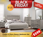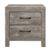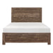 Modern lines and rustic styling are paired to create the look of the Corbin Collection. The embossed faux-wood veneer’s texture is highlighted by a rustic  finish for a realistic wood look. Providing complementing contrast, the drawer fronts of the dresser, chest and nightstand feature black metal hardware. Subtle framing defines the profile of the headboard and footboard, further lending to the unfettered design of the collection.