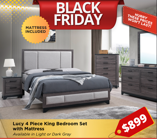 Lucy 4PC King Bedroom Set with Mattress
