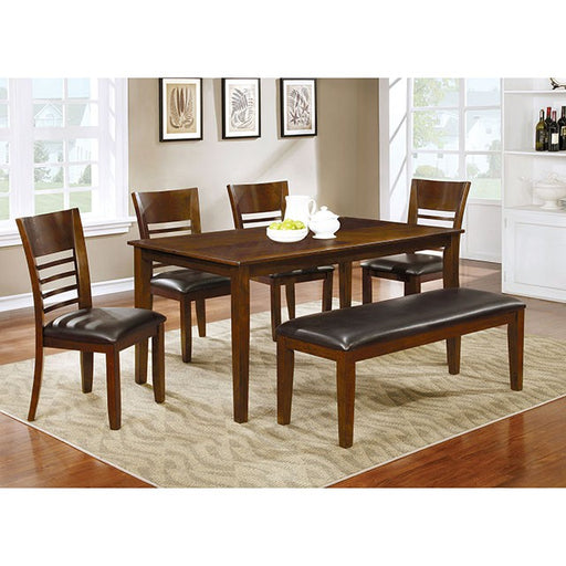 Wichita Light Walnut Bench, 52"L X 16"W X 18 3/4"H, 33lbs. This dining set keeps everyone at the table and comfortably eating dinner. Padded leathe...