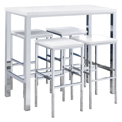 Ultra-modern with a clean lined silhouette, this five-piece bar set comes complete with a rectangular shaped bar table and four bar stools. Perfect...